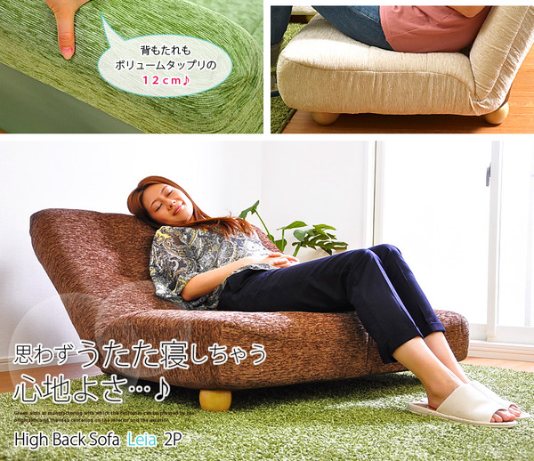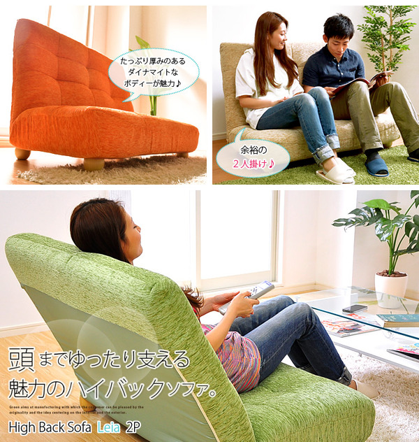- ハイバックローソファー/フロアソファー 【2人掛け/ピンク】 14段階リクライニング 『Leia』 木製脚 ポケットコイル使用