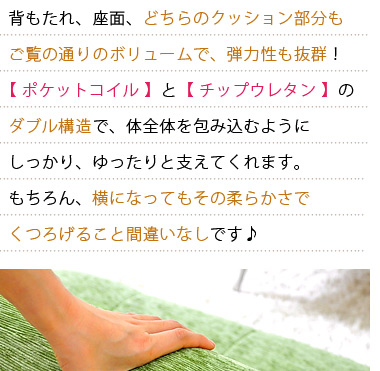 座面に贅沢に使われたコイルスプリングと高級生地で、ゆったりとした贅沢な座り心地!