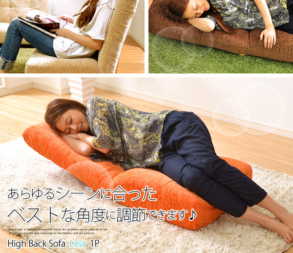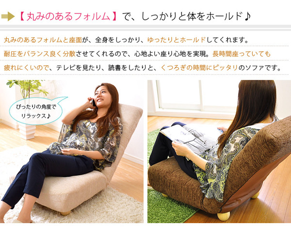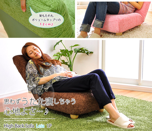 - ハイバックローソファー/座椅子 【1人掛け/ピンク】 14段階リクライニング 『Leia』 木製脚 ポケットコイル使用
