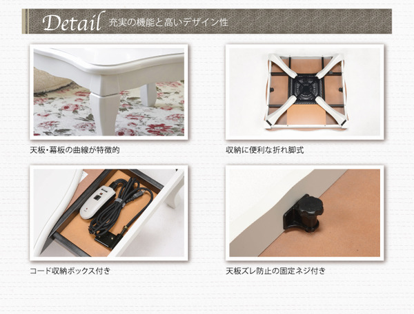 天板から脚まで可愛さにこだわった、フェミニンテイストの猫脚折れ脚コタツ